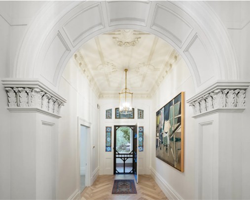 Other heritage features include herringbone parquetry floors, a semi-grand archway and ornate ceiling frames.