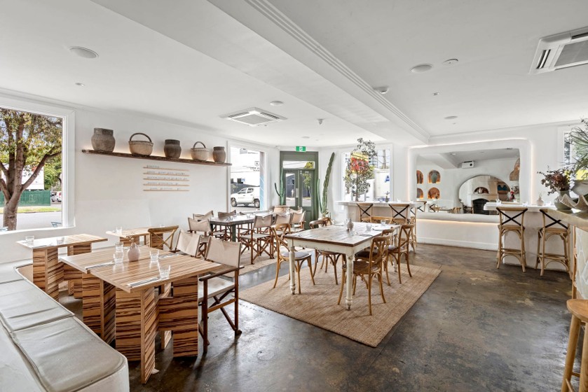 Developed c1870s, operated by Two Wrongs founders Isaac Constantine and Zachary Riggs, the Santorini inspired interior spreads 580 square metres over two floors.