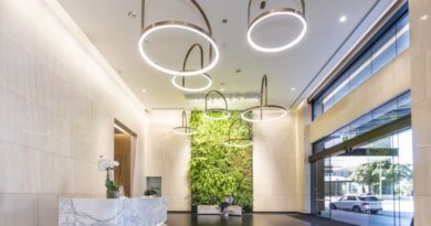 The building offers a resident-only fitness room, golf simulator and children’s playroom.